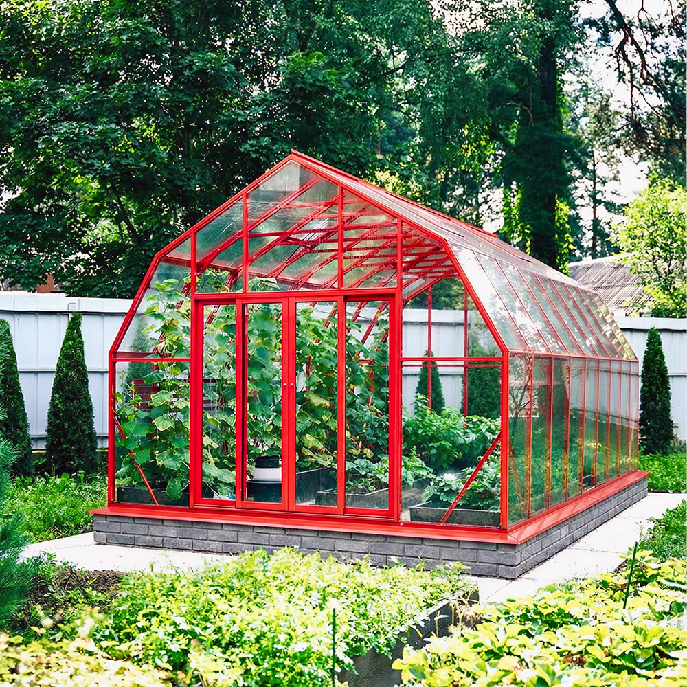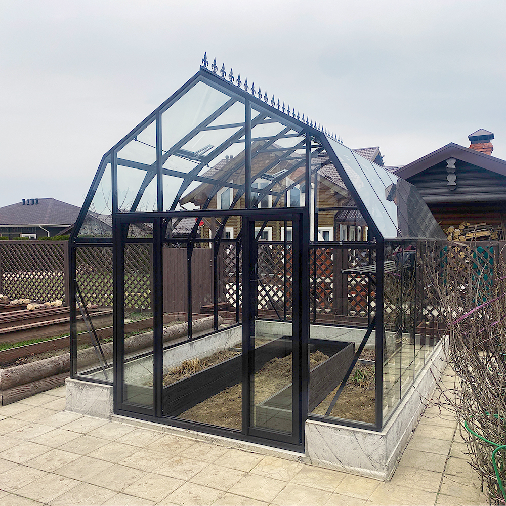 Популярная модель теплицы CRISTALIKA Classic с алюминиевым каркасом, шириной 3 метра. Конструкция имеет мансардную форму, которая способствует созданию благоприятных условий для интенсивной циркуляции воздуха внутри теплицы.