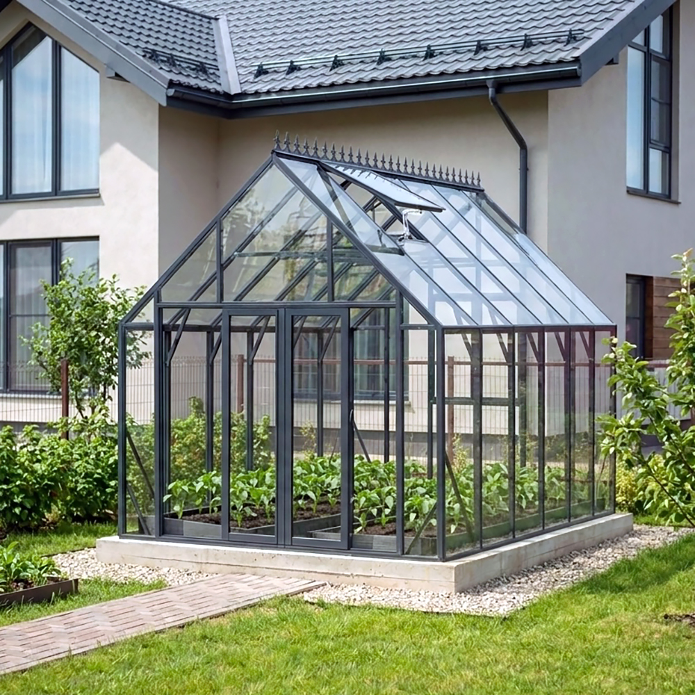 Модель ESTRELLA – это теплица с увеличенной высотой. Такая конфигурация стала возможна за счёт уменьшения угла в коньке конструкции. Благодаря такому углу, верхний скат теплицы стал более приспособлен для ускоренного самостоятельного схода снега, который даже не успевает скапливаться на крыше.